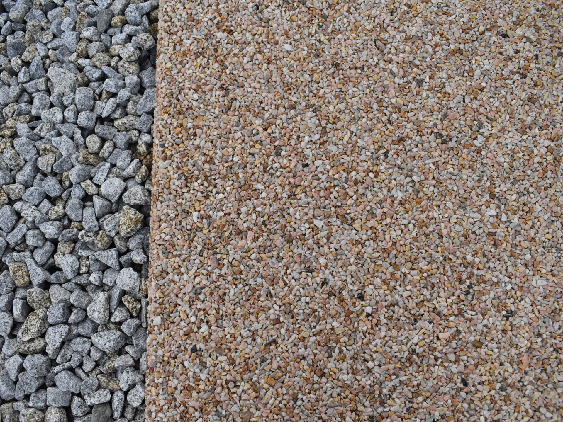 砂利は、小さな丸い石の集まりのことです。外構空間に視覚的な変化と聴覚的な心地よさをもたらす素材です。歩くたびに足元からシャリッと音が鳴り、防犯面にもさりげない効果があります。見た目には、色や大きさの違いで印象ががらりと変わり、単調になりがちな地面に豊かな表情を与えてくれます。
