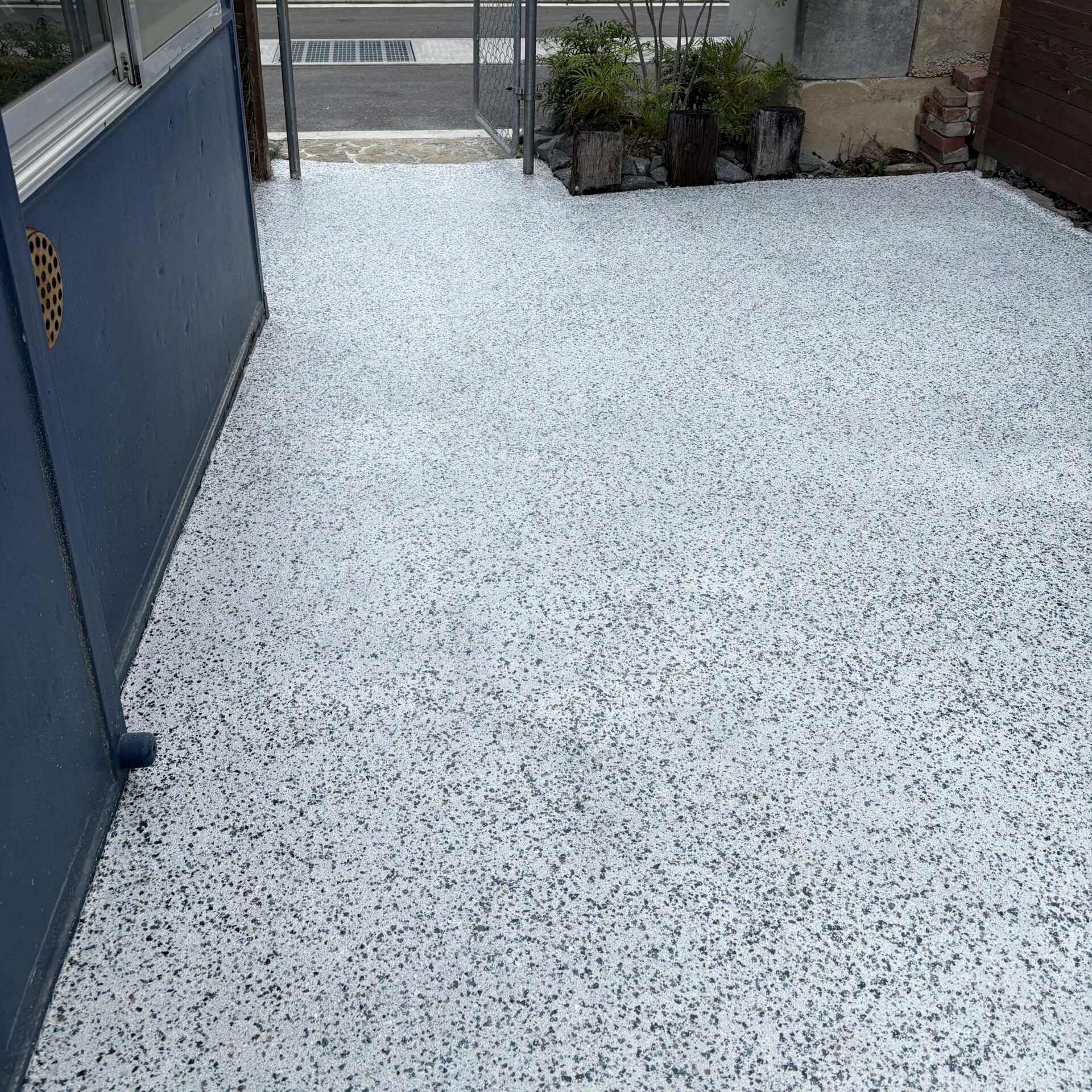 ポリフレークの素材に使用されている「ポリアスパーティック樹脂」は、硬化が早く最短1〜2日で完成します。休日に外構をリフォームしたい方や、営業を止めずに施工したい店舗にもぴったりな床材です。